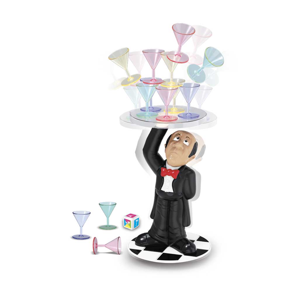O objetivo é equilibrar os copos na bandeja do garçom